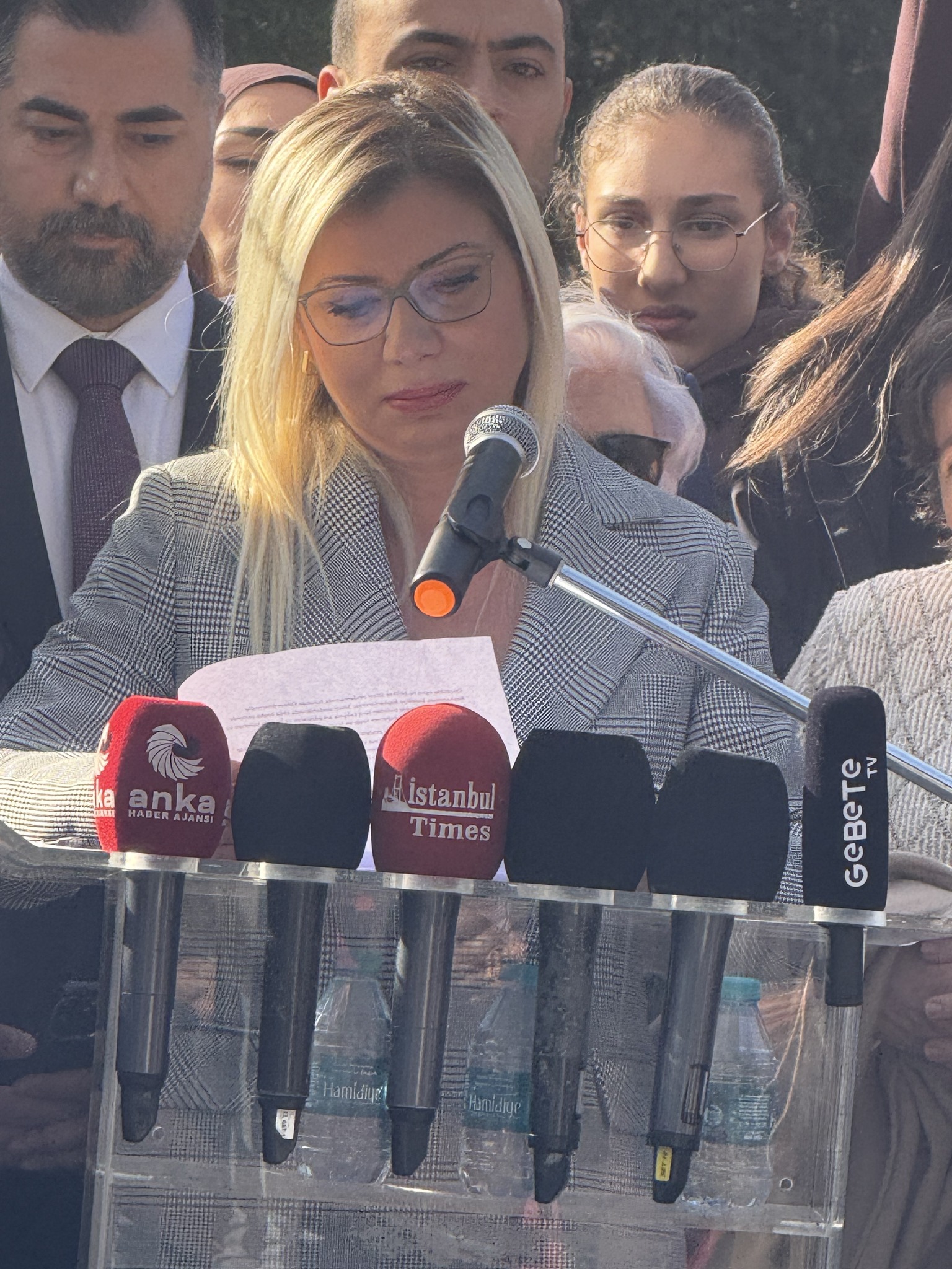“Gelin bu tabloya birlikte bakalım: Bir yanda ‘Mahkeme canlı yayınlansın, her şey milletin önünde olsun’ diyenler… Diğer yanda ‘Saklayın, göstermeyin, konuşulmasın, duyulmasın’ diyenler… Sadece bu manzara bile kimin doğruları söylediğini, kimin saklamaya çalıştığını bütün açıklığıyla göstermiyor mu? Biz ise tüm bu baskıların, yalanların ve iftiraların karşısında en başından beri aynı net talebi dile getiriyoruz: Adalet herkes için eşit işlesin! Masumiyet karinesi korunsun; tutuksuz, adil ve şeffaf yargılama ilkeleri eksiksiz uygulansın. Mahkeme süreci TRT’den canlı yayınlansın! Şunu da tüm ailelerin ortak talebi olarak iletiyorum: TRT, artık tarafsız, sağduyulu ve masumiyet karinesini gözeterek yayın yapmalıdır. Kamu yayıncısı TRT, suçları kanıtlanmamış kişiler hakkında yapılan taraflı yayınlarla ailelere, çocuklara yaşatılan zulme artık son vermelidir.”
