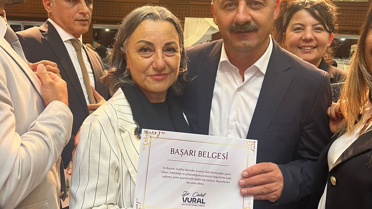 Diğer tarafından kuruluş sürecinde atama yöntemi ile beni il yönetim kurulu üyeliğine seçen kurucu il başkanımız Dr. Cahit Vural’a ve başarı belgemi bana takdim eden genel başkanımız sayın Yavuz Ağıralioğlu’na teşekkür ederim.” Şeklinde konuşan Asuman Sula Durmuşoğlu’na bizde Anahtar Partisindeki çalışmalarında başarılar dileriz.