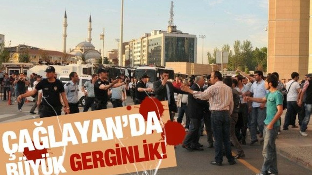 Bu grubun da karşılık vermek istemesi üzerine ortam bir anda gerilirken, güvenlik nedeniyle adliye bahçesi önünde bekleyen çevik kuvvet ekipleri müdahale etti. Ekipler, grubun etrafını sarıp adliye önünden uzaklaştırdı.