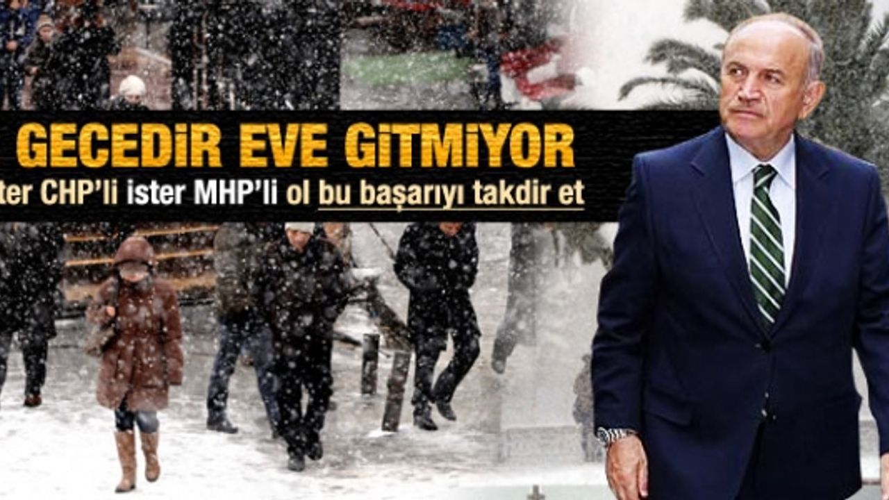 Topbaş'ın verdiği talimatla karla mücadele ekipleri bir gün önceden kritik noktalara yerleştirilerek hazır bekletildi. Yağış başlar başlamaz tüm ana cadde ve arterlerde 72 saat aralıksız sürecek tuzlama, solüsyon çalışmalarına start verildi. Başkan Topbaş, pazartesi sabah saatlerine kadar AKOM üzerinden çalışmaları bizzat yönetti.