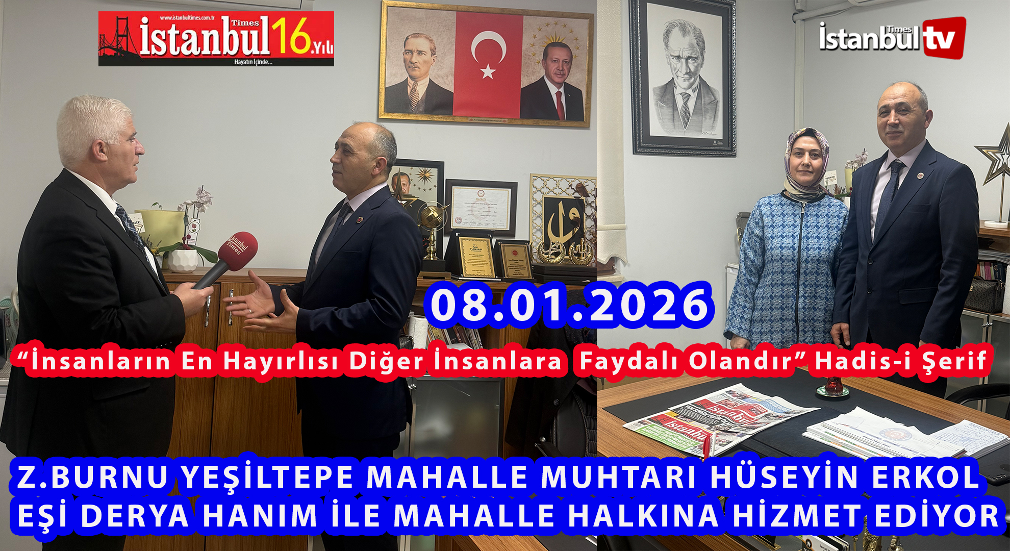 Mahalle muhtarlığında yapılan röportajda gazeteci yazar Hüseyin Çetiner’in bir çok konuda sorduğu her türlü soruya samimi cevaplar veren Zeytinburnu Yeşiltepe Mahalle muhtarı Hüseyin Erkol ile yapılan röportajını dikkatinize sunuyoruz.