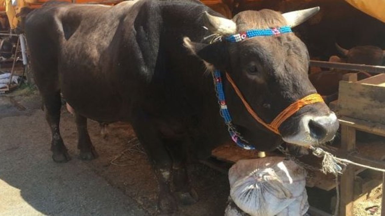 Başakşehir Kurban Satış ve Kesim Merkezi’nde 1 ton 450 kilo ile İstanbul’un en büyük kurbanlığı olduğu iddia edilen ‘Dadaş’ isimli dana, 30 bin TL’ye alıcısını bekliyor